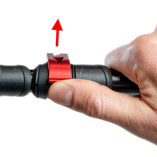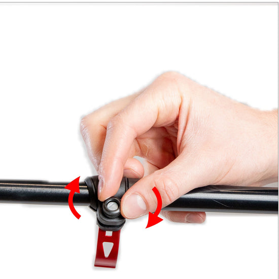 2. With Flip Clamps open, turn the adjuster screw ΒΌ to Β½ turn clockwise to increase the clamp compression to prevent poles from collapsing. DO NOT tighten screw all the way.